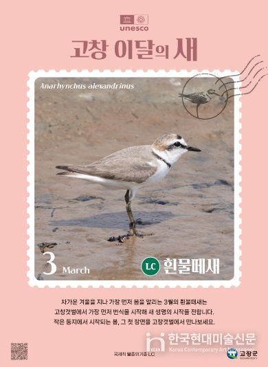 한국현대미술신문 기자 | 고창군이 3월 ‘고창갯벌 이달의 새’로 흰물떼새(학명 Anarhynchus alexandrinus)를 선정하고, 봄철 갯벌 번식 조류 보호와 생태계 보전의 중요성을 알리는 홍보 활동을 추진한다.
