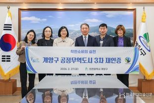 한국현대미술신문 박재남 기자 | 인천광역시 계양구는 한국공정무역마을위원회로부터 공정무역도시 3차 재인증을 획득하고, 2월 27일 인증서 전달식을 개최했다.