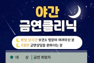 시는 근무 등으로 낮 시간대 금연상담에 참여하기 어려운 시민들을 위해 야간 금연클리닉을 운영한다. 금연을 희망하는 흡연자 누구나 참여할 수 있다.