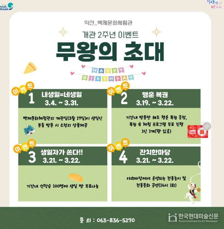 이번 개관 2주년 기념 행사 '무왕의 초대'는 총 네 가지 프로그램으로 구성됐으며, 별도의 사전 예약 없이 누구나 참여할 수 있다.