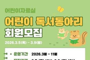 한국현대미술신문 원진 기자 | 강릉교육문화관은 초등학생들을 대상으로 3월 14일부터 2026년 어린이 독서동아리를 운영한다.