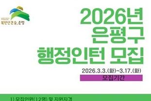 한국현대미술신문 배건 기자 | 서울 은평구는 미취업 청년을 대상으로 행정인턴 참여자 12명을 오는 17일까지 모집한다고 밝혔다.
