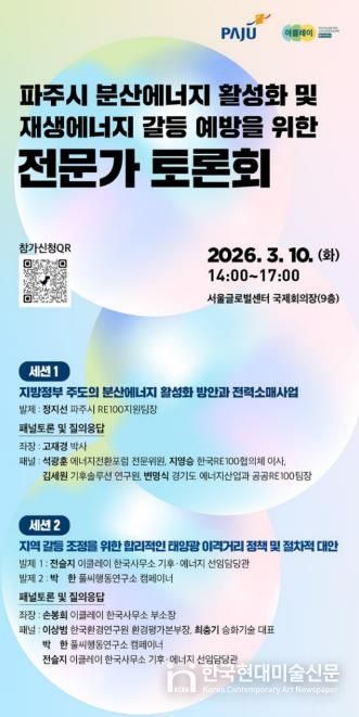 한국현대미술신문 배윤섭 기자 | 파주시는 이클레이(ICLEI) 한국사무소와 함께 오는 10일 서울글로벌센터 국제회의장에서 ‘분산에너지 활성화 및 재생에너지 갈등 예방을 위한 전문가 토론회’를 개최한다.