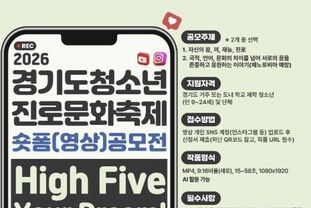 한국현대미술신문 배윤섭 기자 | 경기도청소년활동진흥센터와 광주시 청소년수련관은 오는 5월 22일 개최되는 ‘2026년 경기도 청소년 진로·문화 축제’를 앞두고 숏폼 영상 공모전 ‘High Five Your Dream!’을 운영한다고 5일 밝혔다.