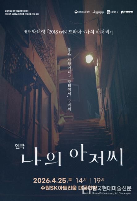 한국현대미술신문 배윤섭 기자 | 수원문화재단 수원SK아트리움은 오는 4월 25일, 수많은 시청자의 인생 드라마로 손꼽히는 tvN 드라마 원작의 연극 ‘나의 아저씨’를 대공연장 무대에 올린다고 밝혔다.