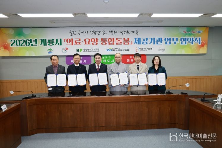 한국현대미술신문 신정은 기자 | 충남 계룡시는 5일 ‘2026년 의료·요양 통합돌봄 제공기관 업무협약식’을 개최하고 본 사업의 원활한 추진을 위한 민·관 협력체계를 구축했다고 밝혔다.