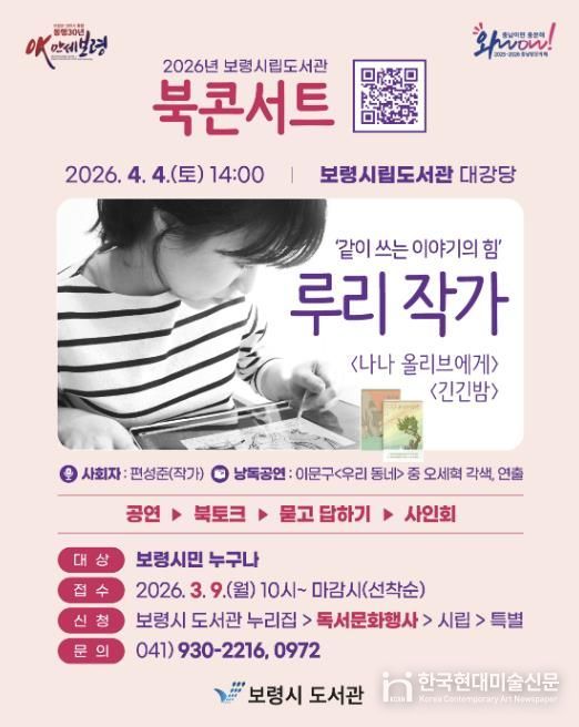 한국현대미술신문 신정은 기자 | 보령시는 4월 4일 토요일 오후 2시 보령시립도서관 대강당에서 베스트셀러 『긴긴밤』의 저자 루리 작가를 초청해 북콘서트를 개최한다고 밝혔다.