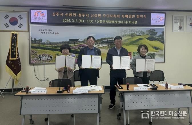 한국현대미술신문 신정은 기자 | 공주시 신풍면은 지난 5일 신풍면 주민자치회와 청주시 낭성면 주민자치위원회가 자매결연 협약을 체결했다고 밝혔다.