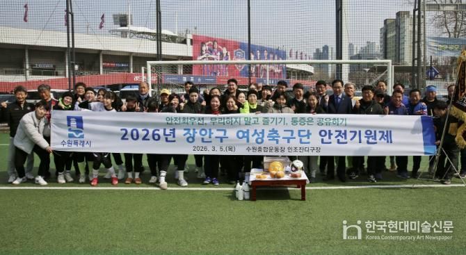 한국현대미술신문 배윤섭 기자 | 수원시 장안구 여성축구단은 지난 5일, 수원종합운동장 인조잔디구장에서 선수단과 관계자 등 30여 명이 참석한 가운데 2026년 안전기원제를 진행했다.