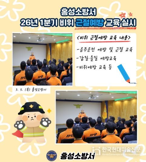 한국현대미술신문 신정은 기자 | 홍성소방서는 지난 5일 공직기강 확립과 청렴한 조직문화 조성을 위해 직원을 대상으로 2026년 1분기 비위 근절 예방 교육을 실시했다고 밝혔다.
