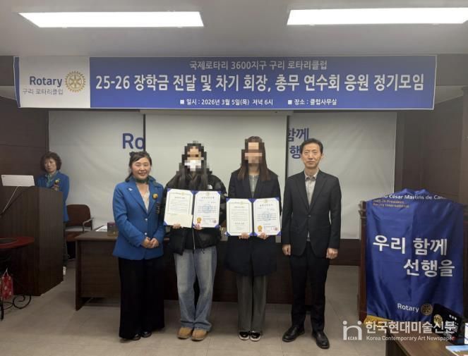국제로타리 3600지구 구리로타리클럽 사무실에서 열린 진달식에서는 수택3동 행정복지센터가 추천한 고등학생 2명에게 각 50만 원씩 총 100만 원의 장학금이 전달됐다.