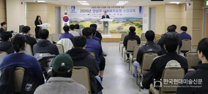 한국현대미술신문 배윤섭 기자 | 수원시 팔달구는 지난 5일 팔달구청 대회의실에서 사회복무요원 전원을 대상으로 2026년 상반기 소양교육을 실시했다.