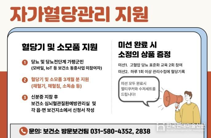 한국현대미술신문 배윤섭 기자 | 가평군보건소가 당뇨병 예방과 체계적인 관리를 돕기 위한 자가혈당 관리 지원사업을 본격 추진한다.