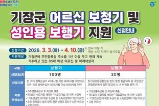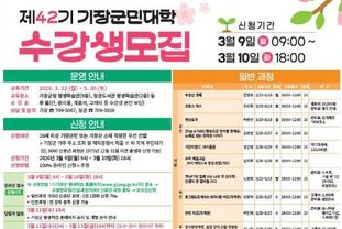 단, 기장군민대학 5060 신중년 과정은 1975년 12월 31일 이전 출생자일 경우 신청이 가능하다. 수강신청은 3월 9일부터 10일 양일간 진행되며, 수강 희망자는 기장군 평생학습 홈페이지에서 신청할 수 있다.