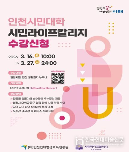 한편, 2026년 시민대학 캠퍼스는 오는 3월 30일부터 개강하며, 수강 신청 3월 16일부터 27일까지 평생학습이력시스템(LMS시스템)을 통해 가능하다. 인터넷 검색창에서 ‘인천시민대학’을 검색하면 접속할 수 있다.
