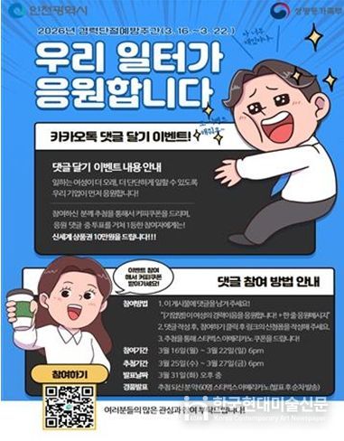 한국현대미술신문 박재남 기자 | 인천여성가족재단 인천광역새일센터는 2026년 경력단절예방주간(3월 셋째주)를 맞아 3월 16일부터 22일까지 “우리 일터가 응원합니다.” SNS 댓글 달기를 개최한다.