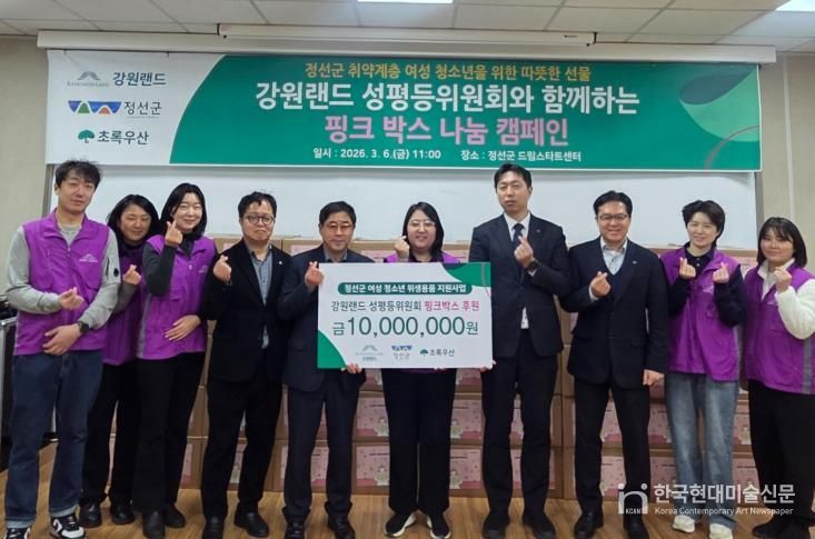 한국현대미술신문 원진 기자 | 정선군은 3월 6일 정선군 여성회관 소회의실에서 강원랜드 성평등위원회와 초록우산 어린이재단 강원지역본부가 후원하는 ‘핑크박스’ 전달식을 개최했다.