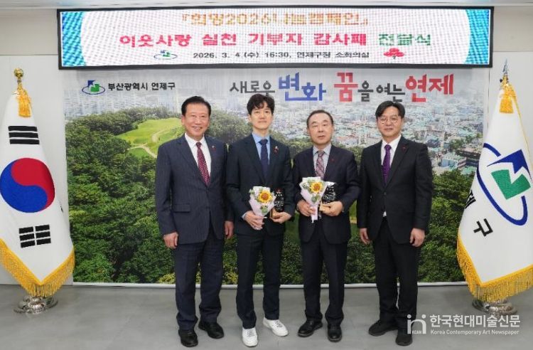 한국현대미술신문 정소영 기자 | 연제구는 지난 3월 4일, 부산사회복지공동모금회(회장 이수태)와 함께 '희망2026나눔캠페인 이웃사랑 실천 기부자'에게 감사패를 전달했다.