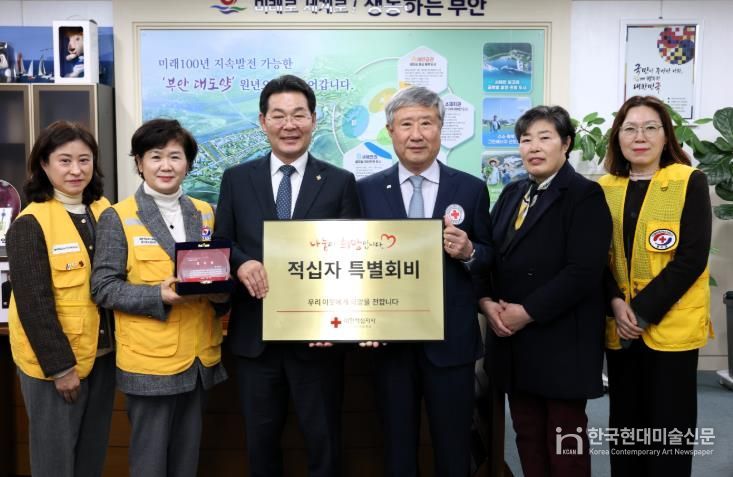 한국현대미술신문 기자 | 부안군은 기부문화 확산과 적십자 회비 모금에 군민들의 자발적 참여 분위기를 조성하기 위해 6일 군수실에서 2026년도 적십자 특별회비 전달식을 갖고 대한적십자사 전북지사에 특별회비를 전달했다고 밝혔다.