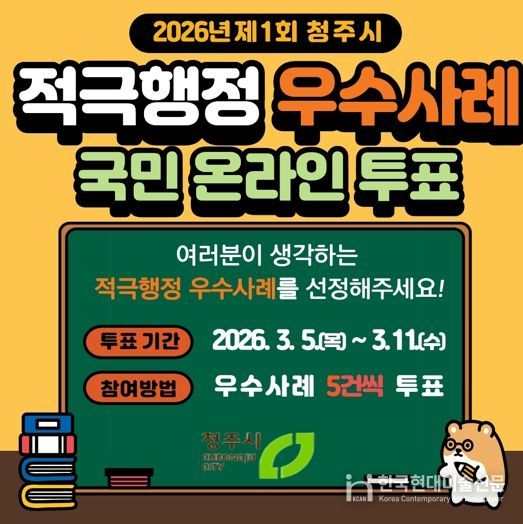 한국현대미술신문 신정은 기자 | 청주시는 ‘2026년 제1회 적극행정 우수공무원 선발’ 공모 심사를 위한 시민 투표를 3월 11일까지 진행한다고 7일 밝혔다.
