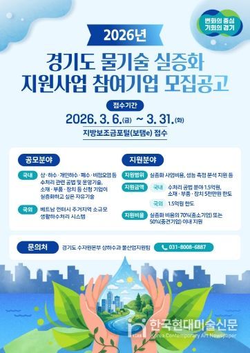 한국현대미술신문 배윤섭 기자 | 경기도가 ‘2026년 경기도 물기술 실증화 지원사업’ 참여 기업을 공개 모집한다.