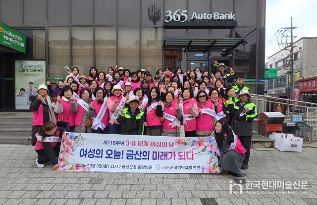 한국현대미술신문 신정은 기자 | 금산군여성단체협의회(회장 임예순)는 지난 9일 금산군청 일원에서 제118주년 3.8세계여성의날을 기념해 행사를 개최했다.