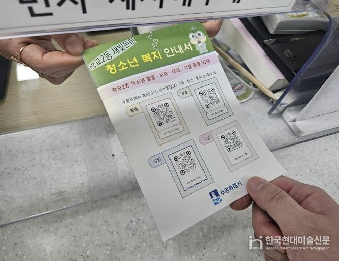 한국현대미술신문 배윤섭 기자 | 수원특례시 영통구 광교2동 행정복지센터는 관내 청소년들이 다양한 복지제도를 쉽게 이해하고 활용할 수 있도록 ‘새빛든든 청소년 복지 핸드가이드’를 제작해 제공한다고 밝혔다.