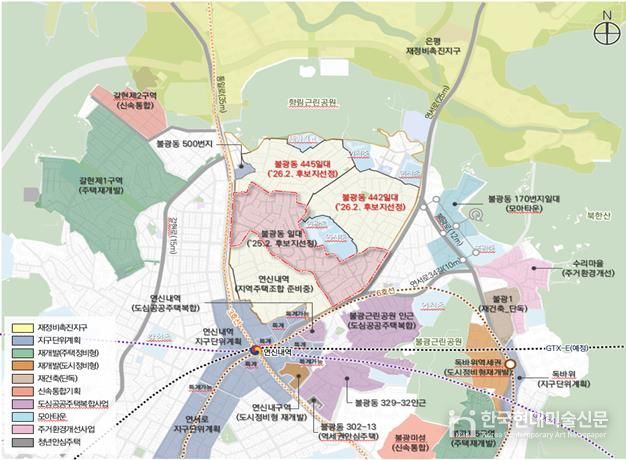 한국현대미술신문 배건 기자 | 서울 은평구는 지난 2월 신속통합기획(신통기획) 재개발 후보지로 선정된 불광동 445·442번지 일대에 대해 후속 절차를 단계적으로 추진한다고 밝혔다.