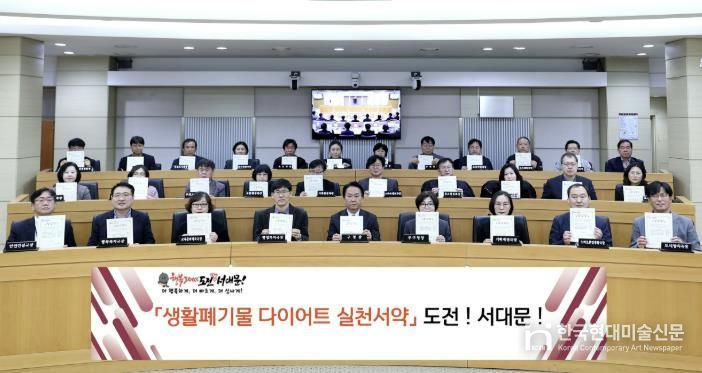 한국현대미술신문 배건 기자 | 서대문구가 이달 12일 구청 대회의실에서 간부 직원들이 참여한 가운데 ‘생활폐기물 다이어트 실천 서약 챌린지’를 진행했다.