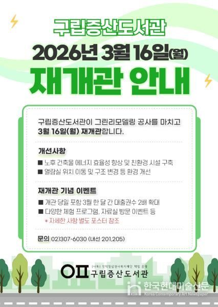 한국현대미술신문 배건 기자 | 서울 은평구는 은평구립증산도서관이 약 11개월간 진행된 그린리모델링 공사를 마치고 오는 16일 새롭게 재개관한다고 밝혔다.
