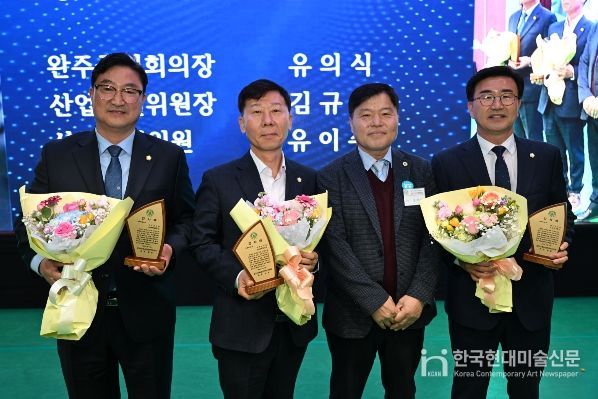 한국현대미술신문 기자 | 완주군의회 유의식 의장과 김규성, 유이수 의원이 13일 지역 농업 발전과 농업인 권익 증진에 기여한 공로를 인정받아 한국후계농업경영인 완주군연합회로부터 감사패를 수상했다.