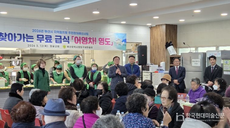 한국현대미술신문 정소영 기자 | 부산 영도구새마을회(회장 김철호)는 지난 3월 12일 봉래1동 소재 땅끝교회에서 지역 내 취약계층 어르신들을 위한 찾아가는 무료급식 사업인 '어영차! 영도' 7회차 행사를 성황리에 개최했다고 밝혔다.