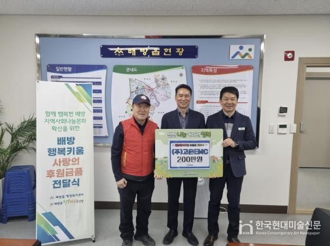한국현대미술신문 신정은 기자 | ㈜고은EMC는 지난 11일 배방읍 행복키움추진단에 복지 취약가정 지원을 위한 후원금 200만 원을 기부했다.