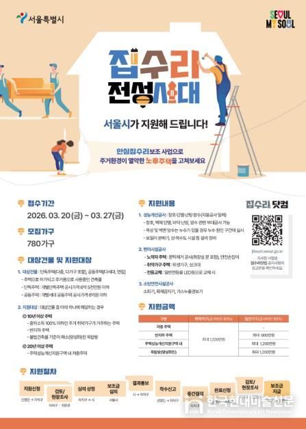 한국현대미술신문 배건 기자 | 서울 강서구는 노후주택 거주자의 주거환경 개선을 위해 집수리 공사비 일부를 지원하는 ‘안심 집수리 보조사업’을 추진한다.