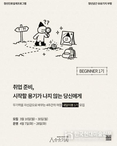 한국현대미술신문 박재남 기자 | 부평구 청년공간 ‘유유기지 부평’은 오는 30일까지 청년 진로설계 프로그램 ‘내일이몽’ 1기 참여자를 모집한다고 밝혔다.