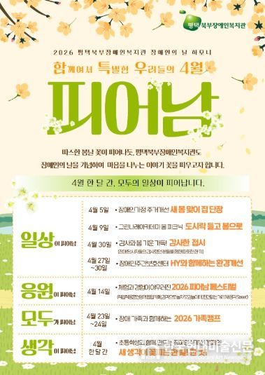 한국현대미술신문 배윤섭 기자 | 평택북부장애인복지관에서는 제 46회 장애인의 날을 맞이하여, 4월 한 달 간2026 장애인의 날 행사 ‘함께여서 특별한 우리들의 4월, '피어남'’을 진행할 예정이다.