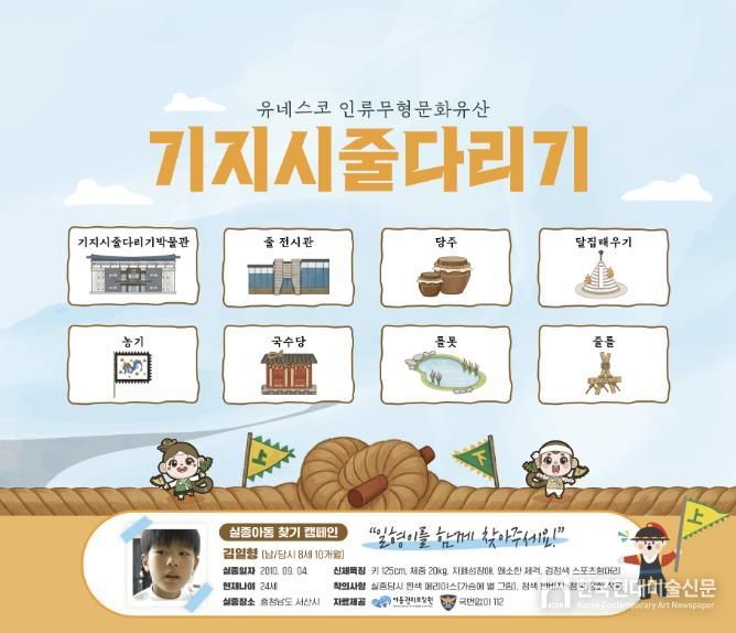 한국현대미술신문 신정은 기자 | 당진시가 전국 최초로 지역의 문화유산 홍보물에 실종아동 찾기 캠페인을 포함해 눈길을 끌고 있다.