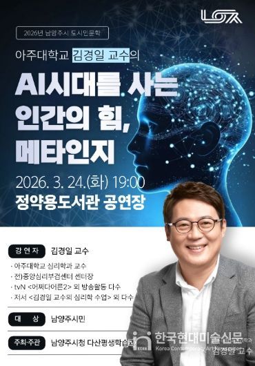 한국현대미술신문 배윤섭 기자 | 남양주시는 오는 3월 24일 정약용도서관 공연장에서 시민 300여 명을 대상으로 도시인문학 특강 ‘AI시대를 사는 인간의 힘, 메타인지’를 개최한다고 17일 밝혔다.