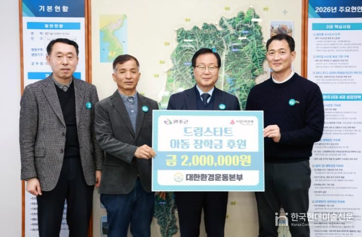 한국현대미술신문 기자 | 대한환경운동본부가 지역 내 취약계층 아동들의 꿈과 희망을 지원하고자 완주군 드림스타트에 장학금 200만 원을 전달하며 훈훈한 온정을 나눴다.