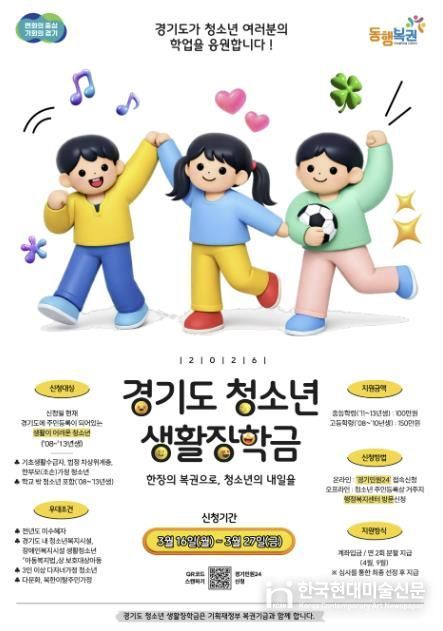 한국현대미술신문 배윤섭 기자 | 가평군은 복권기금을 재원으로 하는 ‘2026년 경기도 청소년 생활장학금’ 신청을 이달 16일부터 27일까지 접수한다.