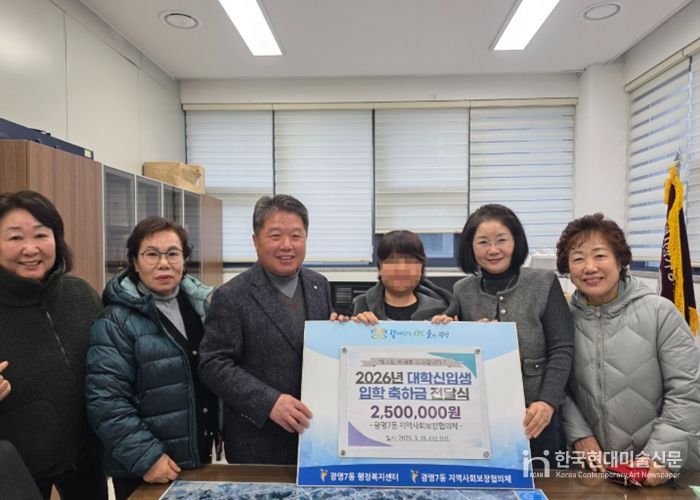 한국현대미술신문 배윤섭 기자 | 광명시 광명7동 지역사회보장협의체는 18일 새학기를 맞아 광명7동 행정복지센터에서 저소득 가정 대학 신입생을 위한 ‘대학 신입생 입학축하금 전달식’을 가졌다.