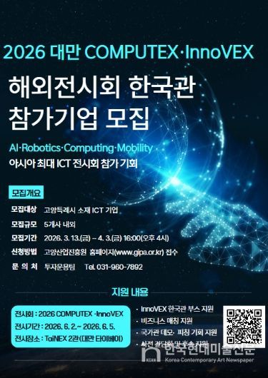 한국현대미술신문 배윤섭 기자 | 고양산업진흥원이 ‘2026 대만 COMPUTEX‧InnoVEX ’참가 기업을 모집한다고 18일 밝혔다.