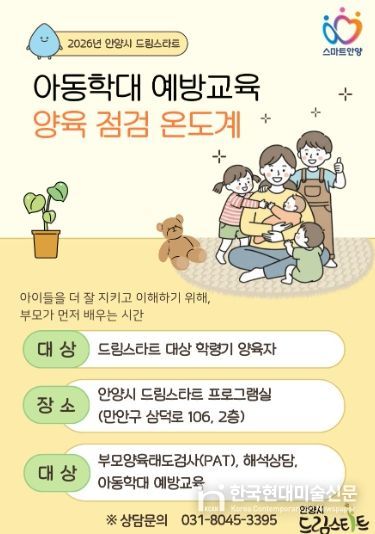 한국현대미술신문 배윤섭 기자 | 안양시가 아동 학대를 사전에 차단하고 건강한 양육 환경을 조성하기 위해 맞춤형 부모 교육 프로그램인 ‘2026 드림스타트 양육 점검 온도계’를 본격 가동한다고 18일 밝혔다.