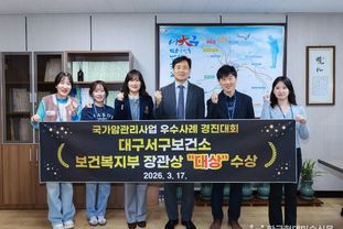 한국현대미술신문 정소영 기자 | 대구 서구보건소는 보건복지부와 국립암센터가 주관하는 ‘2025년도 국가 암 관리 사업 우수 사례 경진 대회’에서 보건복지부 장관 표창 대상을 수상했다고 밝혔다.