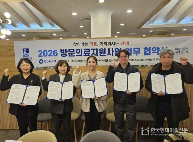 한국현대미술신문 배윤섭 기자 | 수원시 장안구보건소는 18일 지역 의료기관 6곳과 ‘방문의료지원사업 업무협약’을 체결하고, 거동이 불편한 의료 취약계층을 위한 재택의료 지원체계를 강화하기로 했다.