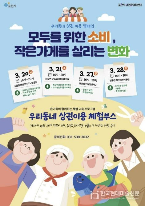 한국현대미술신문 배윤섭 기자 | 포천시는 오는 20일부터 지역경제 활성화를 위한 ‘우리동네 상권이용 캠페인’을 개최한다.