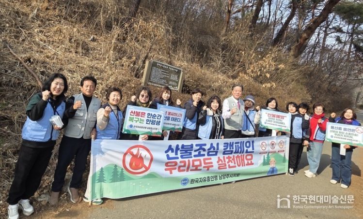 한국현대미술신문 배윤섭 기자 | 남양주시는 지난 16일 호평동 천마산 일대에서 한국자유총연맹 남양주시지회 여성회가 봄철 산불 예방과 시민 인식 제고를 위한 산불조심 캠페인을 실시헸다고 19일 밝혔다.