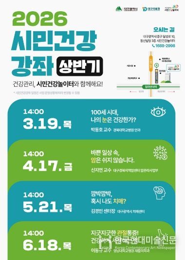 한국현대미술신문 정소영 기자 | 대구광역시 시민건강놀이터는 시민들의 건강관리 실천력 강화를 위해 ‘2026년 시민건강강좌’를 운영한다. 3월 19일 첫 강좌를 시작으로 시민건강놀이터 건강콘서트홀에서 연간 8회에 걸쳐 개최할 예정이다.