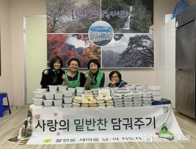 한국현대미술신문 배윤섭 기자 | 동두천시 불현동 새마을부녀회는 지난 18일 불현동 복지 사각지대 소외계층 25가구에 밑반찬을 전달했다고 밝혔다.