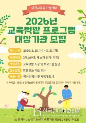 한국현대미술신문 배윤섭 기자 | 이천시는 도시농업 기반 조성 및 활성화를 위해 2026년 도시농업 교육텃밭 프로그램 대상자를 3월 31일까지 모집한다고 밝혔다.
